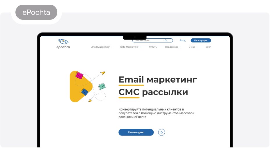 8. ePochta Сервис специализируется на SMS-рассылках и e-mail-маркетинге. Отправлять сообщения клиентам можно по всему миру. Возможны  персонализация сообщений и использование шаблонов. Работает планировщик для запуска отправки по графику. Связаться со службой технической поддержки можно в любое время разными способами, клиенту доступен подробный отчёт. Минимальная стоимость сообщения — 51 копейка.