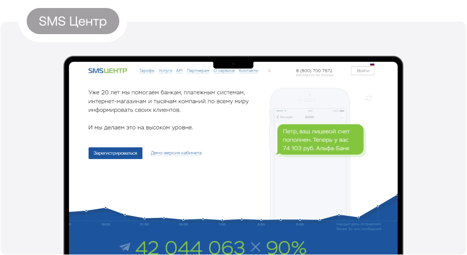 10. SMS Центр Компания появилась на рынке маркетинга более 20 лет назад. Отправлять SMS можно по всему миру, сообщение может содержать до 1000 символов. Из доступных опций — автоматические, персонифицированные, периодические рассылки, автоподстановка имени абонента, фильтрация контактов. Платформа предлагает оценить функционал сервиса в демо-версии кабинета на сайте. Есть опция интеграции с программами и CRM-системами. Стоимость сообщения — от 22 копеек.
