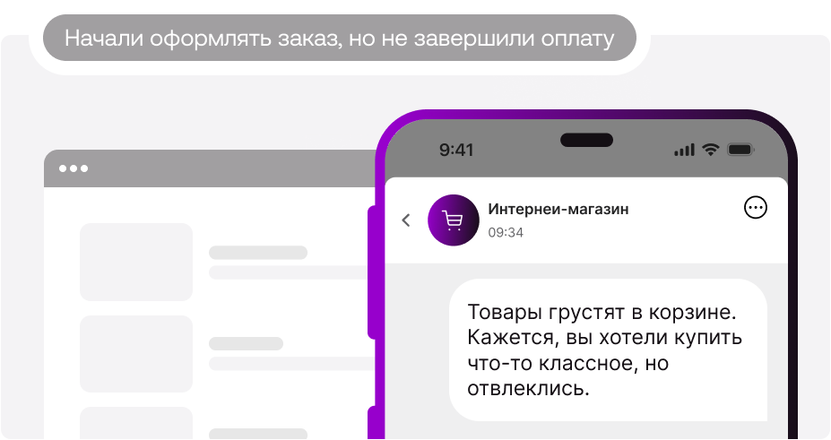 - Интернет-магазин — сообщения о «забытом» в корзине товаре, чтобы подтолкнуть посетителя к покупке.