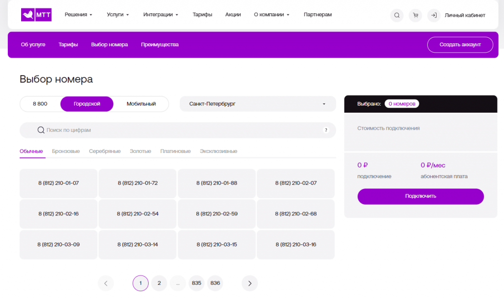 Также можно подключить запоминающиеся красивые номера — бронзовые, золотые или платиновые.